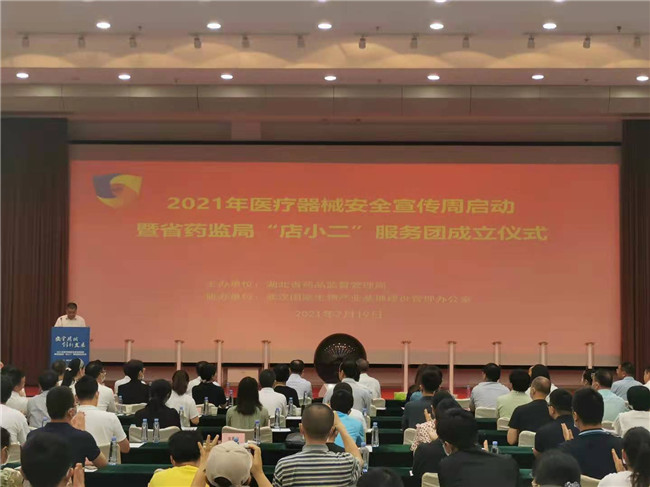 7月19日上午,省局在武漢光谷生物城高科醫(yī)療器械園舉行以“安全用械 創(chuàng)新發(fā)展”為主題的醫(yī)療器械安全宣傳周啟動(dòng)暨省藥監(jiān)局“店小二”服務(wù)團(tuán)成立儀式。省局黨組書(shū)記、局長(zhǎng)劉榮山,武漢國(guó)家生物產(chǎn)業(yè)基地建設(shè)管理辦公室副主任錢(qián)德平出席儀式,省局黨組成員、副局長(zhǎng)朱與杰主持儀式。